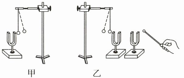 4. 如图,实验甲:用竖直悬挂的泡沫塑料球接触正在发声的音叉时,泡沫塑料球被弹起;实验乙:敲击右边的音叉,左边与右边完全相同的音叉把泡沫塑料球弹起。若在月球(真空环境)上分别做甲、乙两个实验,能看到泡沫塑料球被弹起的是 ()