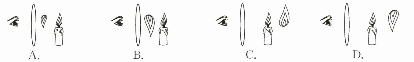 3. 在探究凸透镜成像规律的实验中,当烛焰位于距离凸透镜一倍焦距内时,人眼观察到烛焰成像的情形是 ()