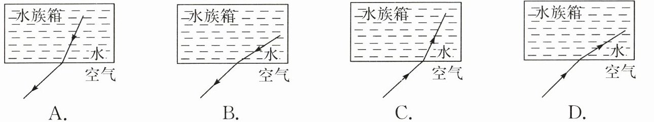 5. 海洋公园内,北极熊站在透明水族箱内,头在水面上、身体在水面下。水族箱外的游客看到了北极熊“身首异处”的奇异场景(如图)。游客看到北极熊身体的光路图是 ()