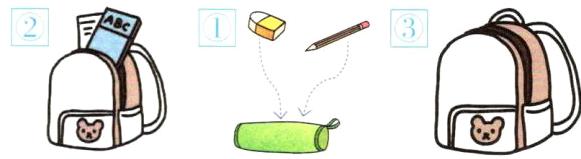 III. Read, match and write(有个小朋友正在整理文具。读一读下面的句子,找到对应的图片,将句子前的数字编号填在方框内)