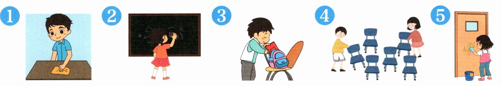 Ⅱ. Listen and judge(同学们在大扫除,老师正在分配任务。听录音,判断图片中的同学们是否完成了正确的任务,用“√”或“×”表示)