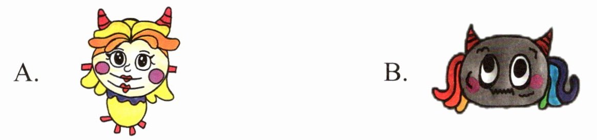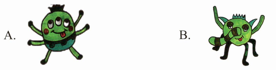 Ⅰ. Listen and circle(小怪兽们的五官和我们有很大不同!听录音,观察他们的五官,圈出与所听内容相符的小怪兽的字母代号)