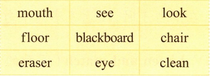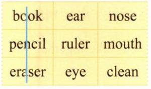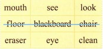 Ⅱ. Read, classify and draw a line(同学们在玩井字游戏。请根据例子,读一读第1到3题的单词,找出在一条直线上的三个同类词,用线划出来)