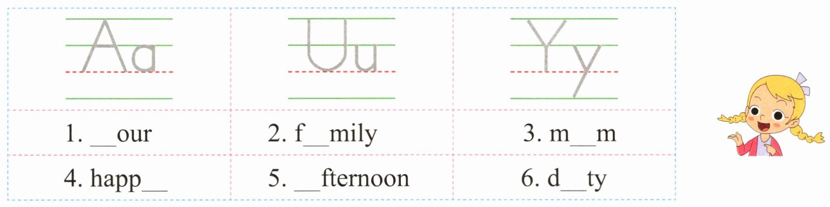 Ⅰ. Trace, choose and write(请跟着Lily读一读下面的字母并描写,根据字母和单词的发音,选择合适的字母完成单词)