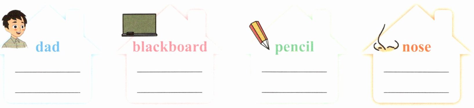 Ⅱ. Read, classify and write(单词宝宝们也有自己的小家庭。请你读一读下面的单词,将同一类的单词的数字编号填在正确的小房子内)