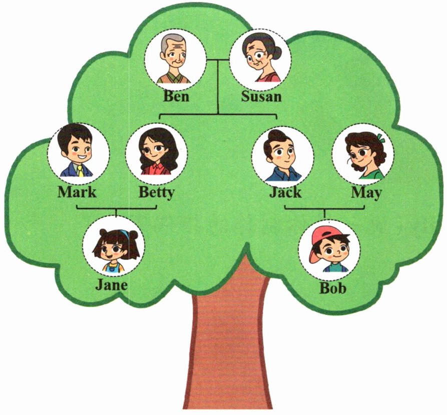 Ⅳ. Read, judge and draw(Bob向同学们展示了他的家庭树。请仔细读图并判断,与图片相符的画