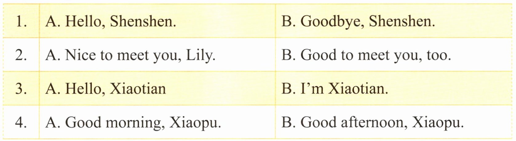 Ⅳ. Listen and circle(请听同学们的如下介绍,圈出 Lily 的应答句)