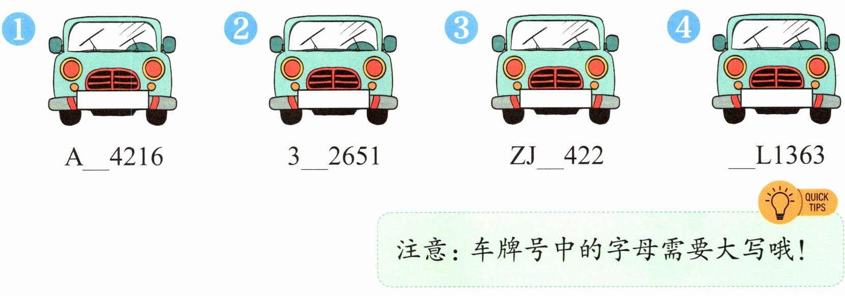 Ⅳ. Listen and write(听录音,用听到的字母和数字补全各个车牌号)
