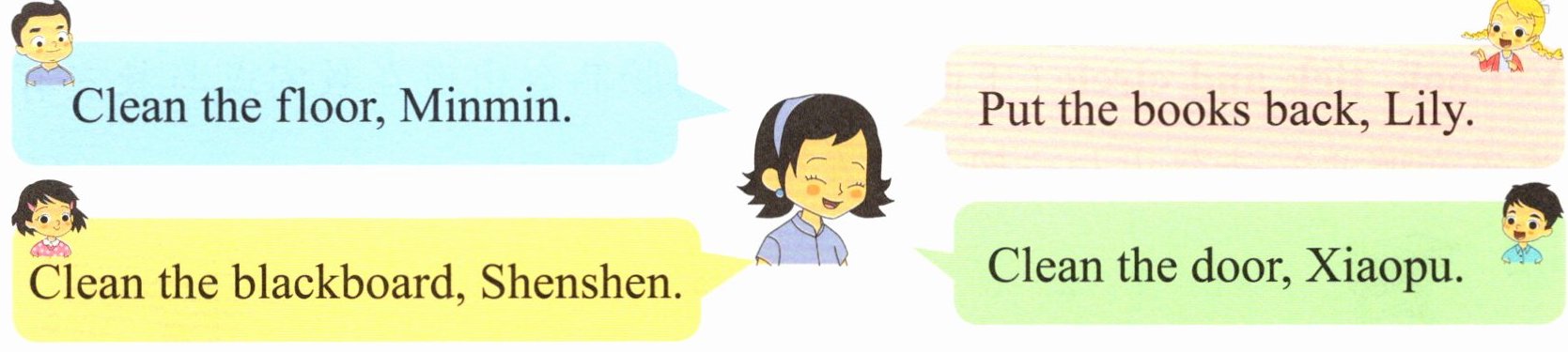 Ⅱ. Read and act (李老师正在分配清扫任务。请你和朋友分别扮演老师和同学,读一读指令,做一做动作)
