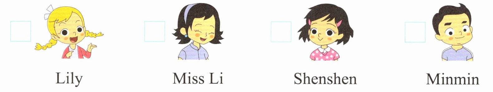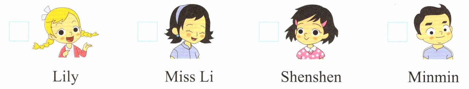 Ⅰ. 1. Minmin, Miss Li, Shenshen, Lily 2. books, desks, chairs 3. Minmin, Miss Li, Shenshen, Lily Ⅱ. 3 1 2 4