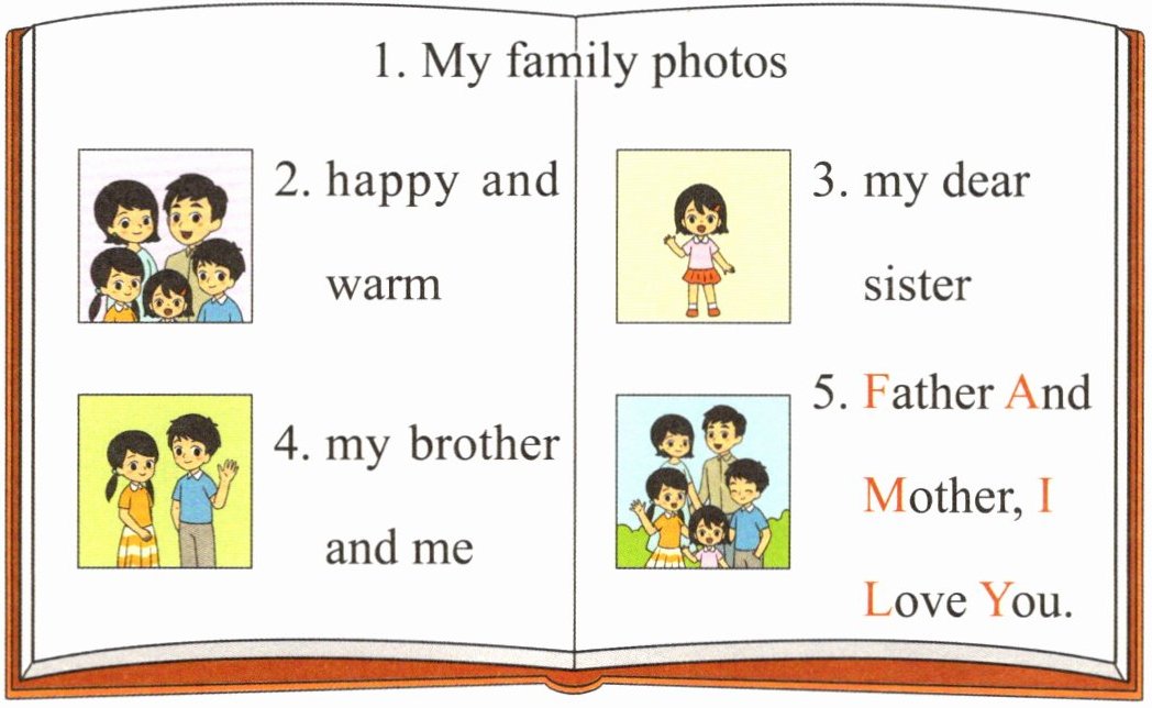 Ⅰ. Read aloud (Meimei制作了一本家庭相册,请你欣赏照片,并大声朗读相册中的短语和句子)