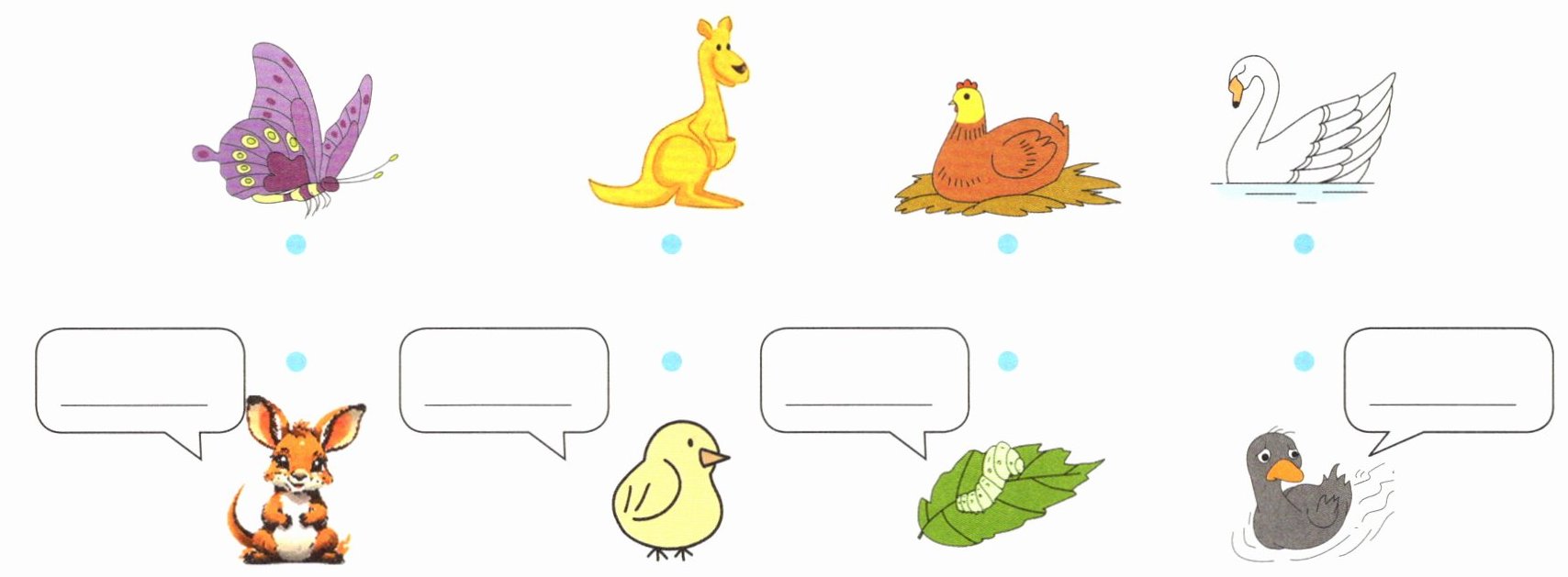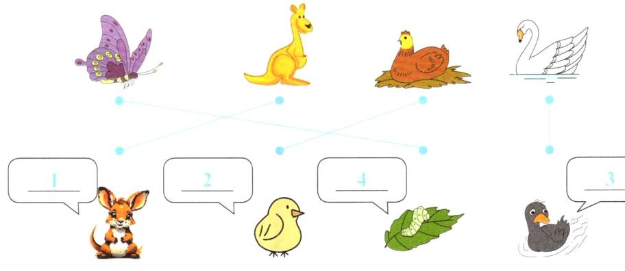 Ⅲ. Read, match and write (仔细观察图片,把小动物和它们的妈妈连起来,并将句子的数字编号填在横线上)