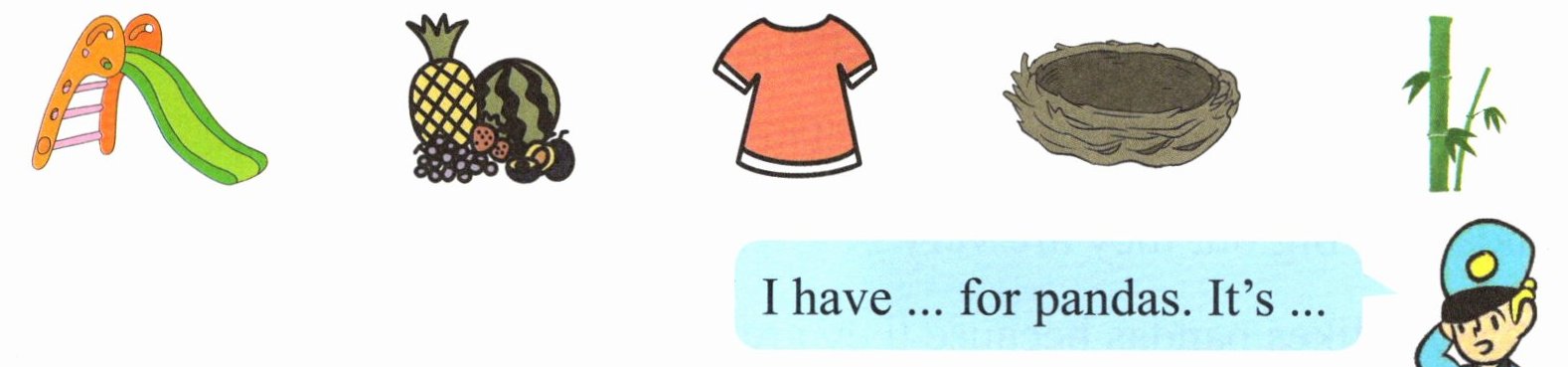 Ⅱ. Circle and say (为了给大熊猫一个更好的生活环境, 饲养员做了许多准备, 请圈出合适的物品, 并说一说)