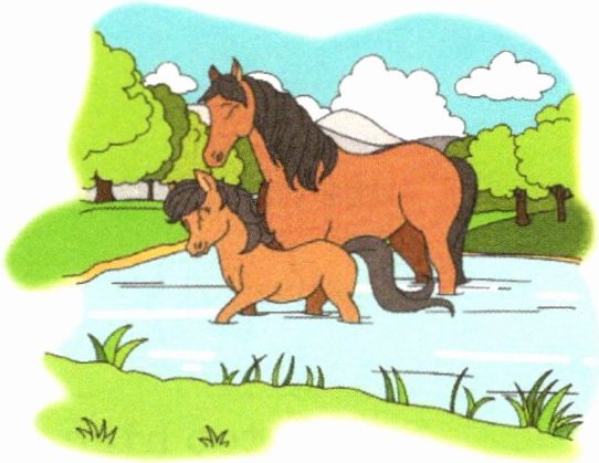 ① Little Horse: No. I'm afraid. ② Mum Horse: You can do it! ③ Little Horse: OK. Let me try. ④ Mum Horse: Yes. You are a good boy.