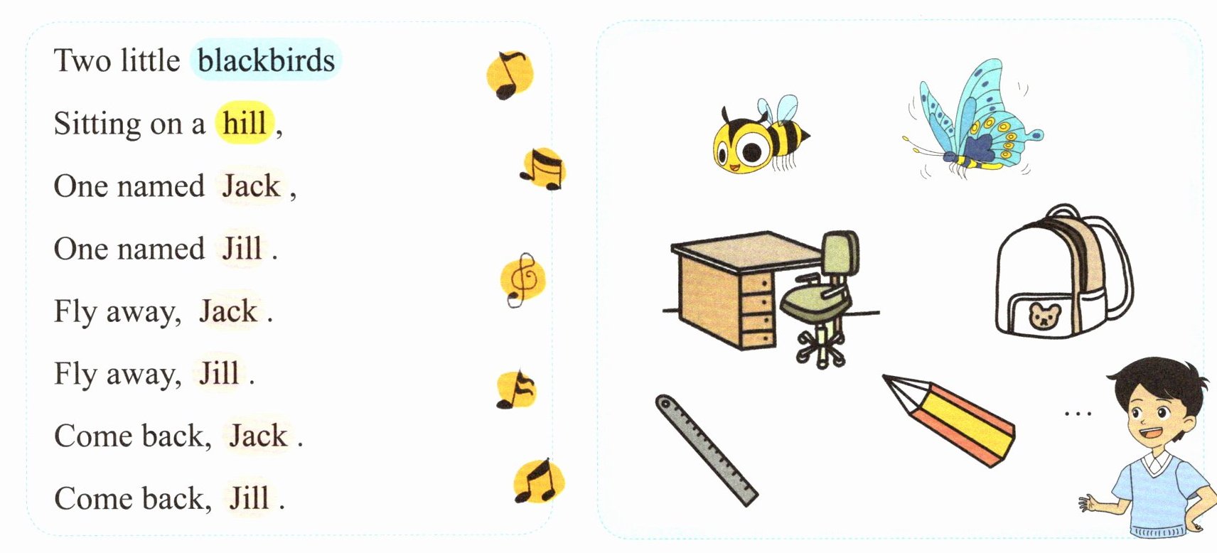 Two little bees. Sitting on a desk. One named Amy. One named Judy. Fly away. Amy. Fly away. Judy. Come back. Amy. Come back. Judy. (此题答案仅供参考)