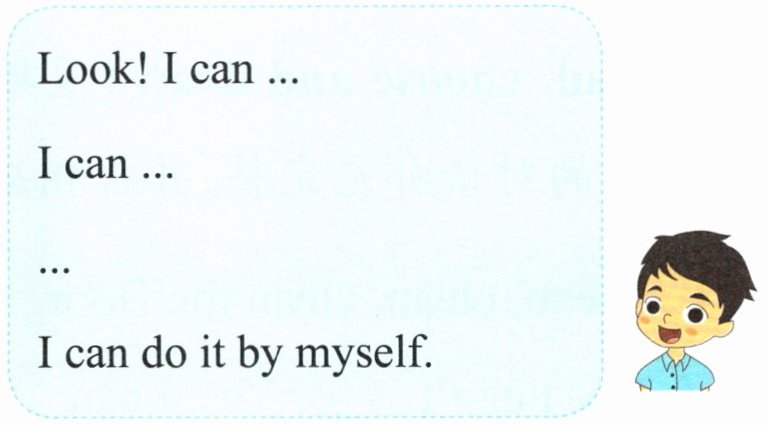 1. (画一个孩子自己穿衣服的图)Look! I can dress myself. I can do it by myself.