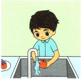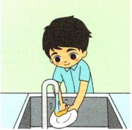 I can do many things in the kitchen. I can wash vegetables. I can wash plates. I can wash bowls and spoons. Nice, nice, nice!