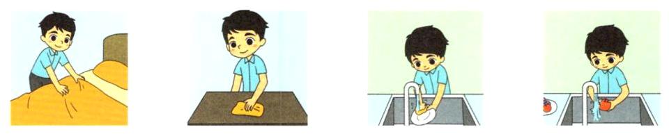 I can do many things in my room. I can clean the floor. I can clean my desk. I can make my bed and pack my toys. Fun, fun, fun!