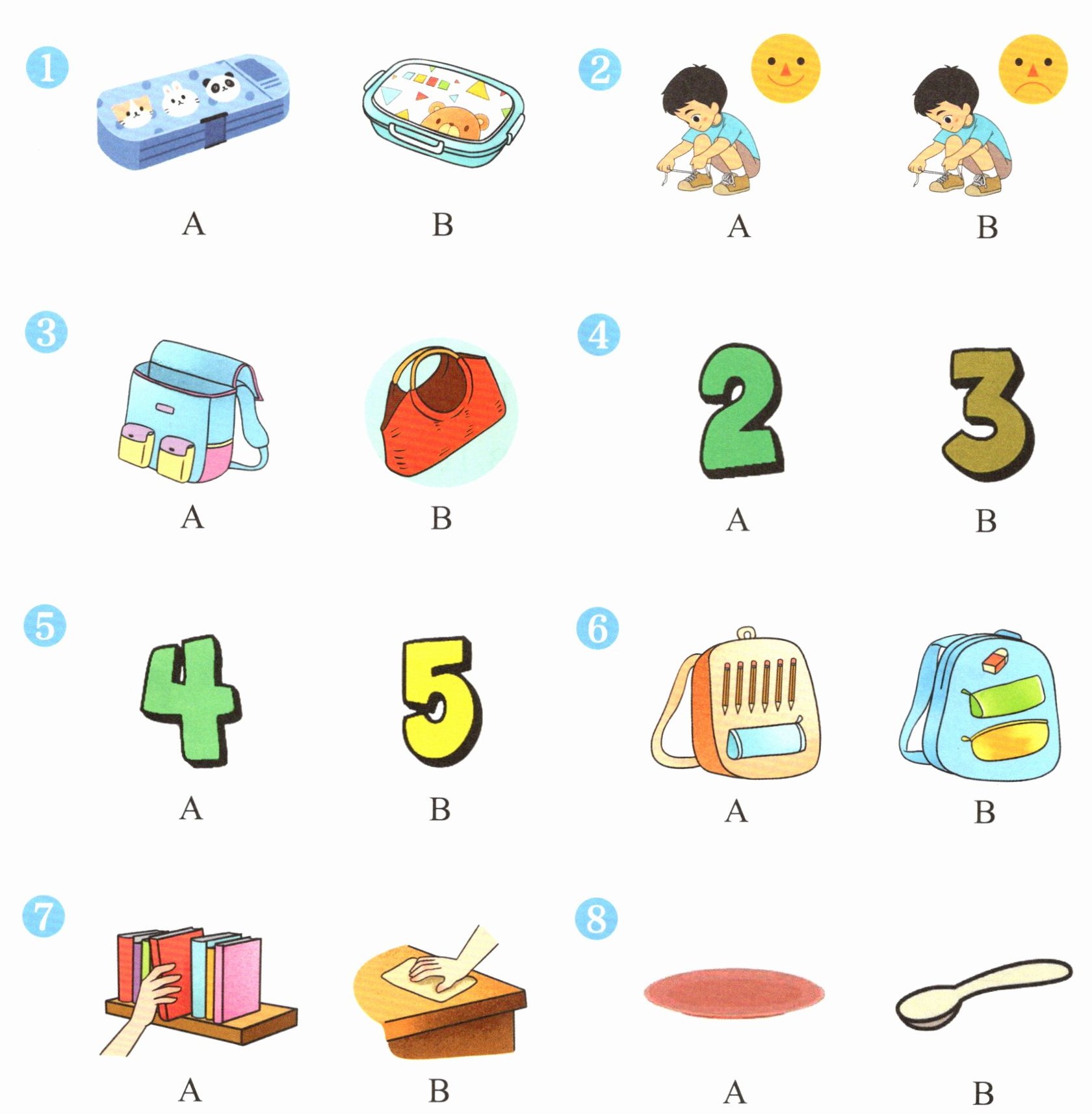 I. Listen and circle (听录音,圈出与录音内容相符的图片)
