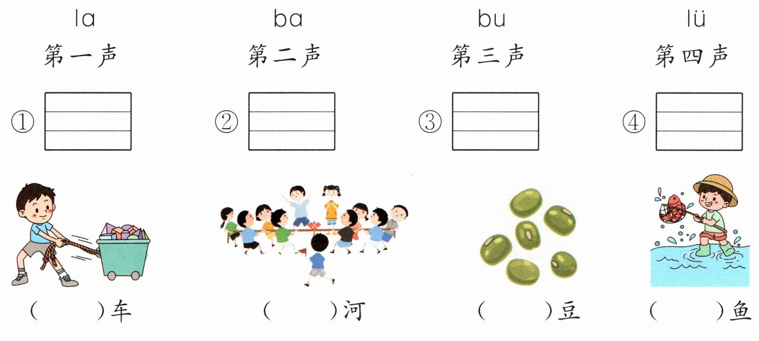 请 按 要 求 ,给 下 面 的 拼 音 标 注 声 调 ,再 看 图 选 一 选