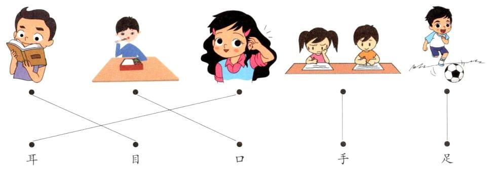 我们用$□$吃东西,用$□$听歌曲,用$□$看书,用$□$写作业,用$□$踢毽子。