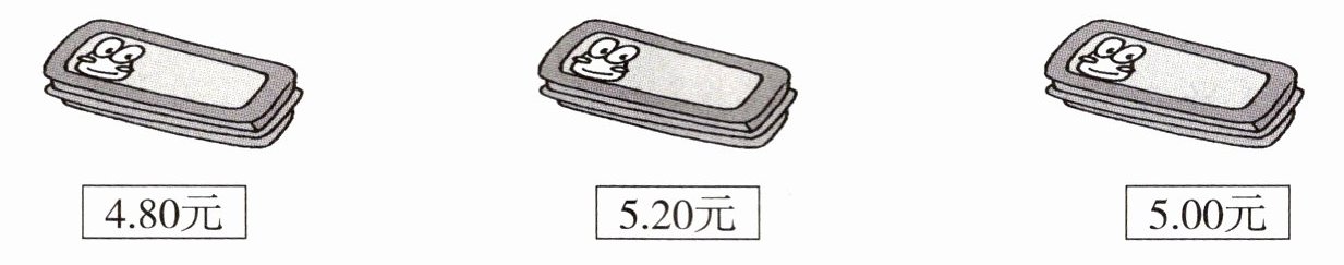 1. 哪家的文具盒最便宜?请打“√”。哪家的文具盒最贵?请打“×”。