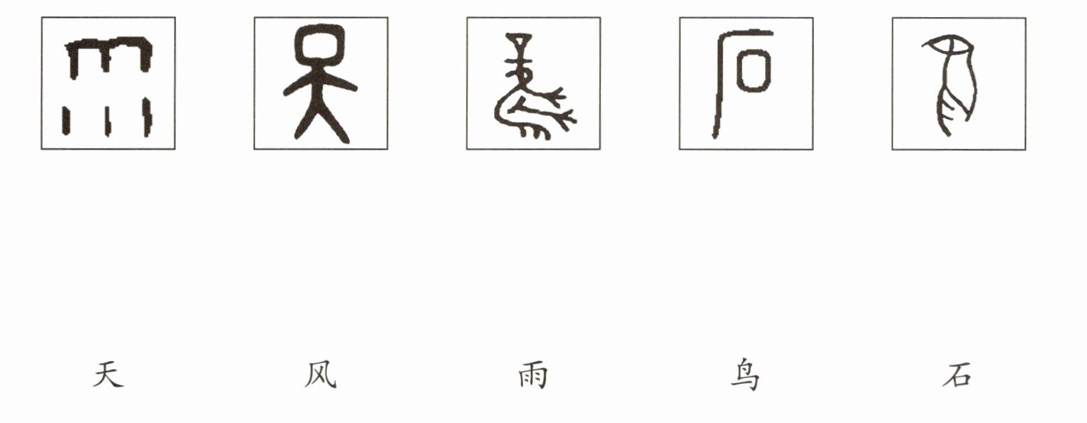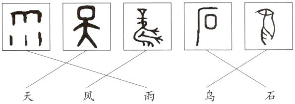 (3)这本书讲述了关于汉字起源的古老故事。你能猜出下面的象形字都是什么字吗?请连一连。