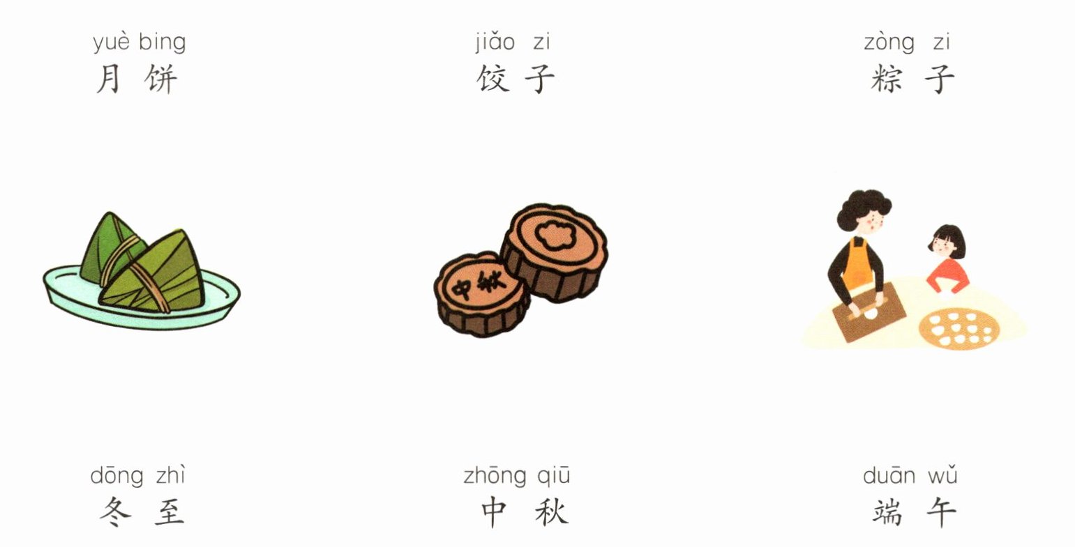 1. 将以下中国传统美食名称、图片以及对应的节日连一连。
