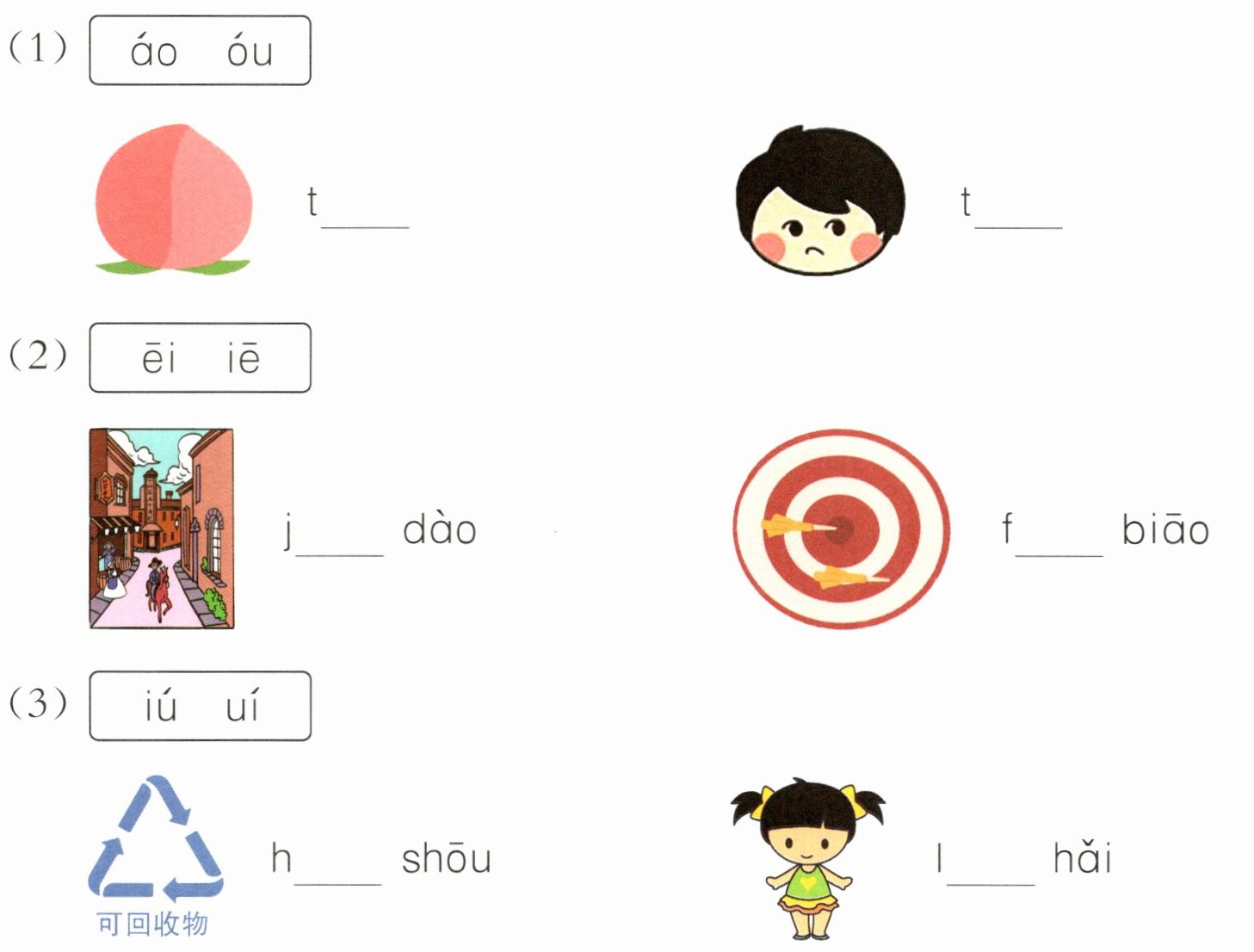 (1)táo tóu (2)jiē fēi (3)huí liú