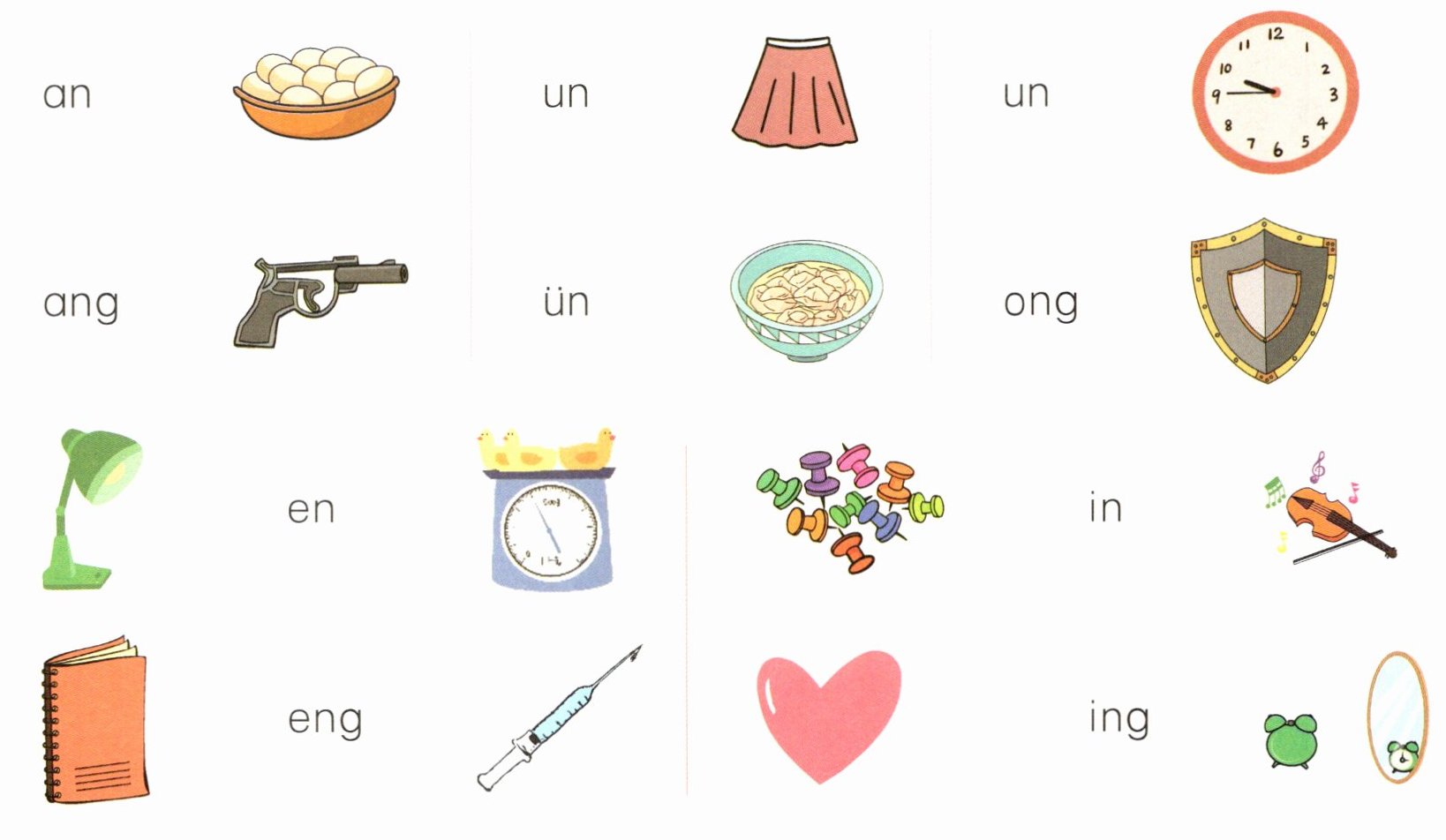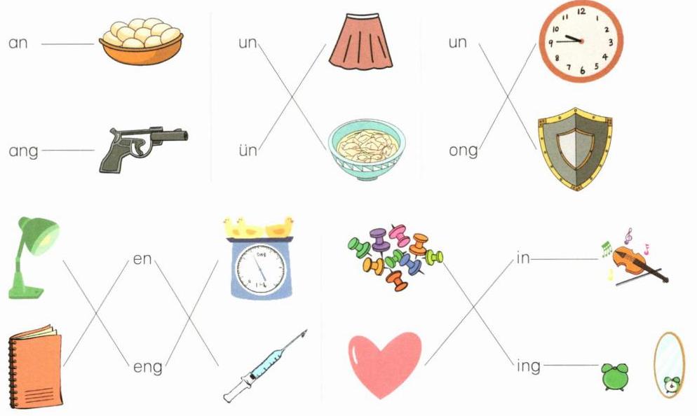 3 我能把图和对应的韵母连起来。