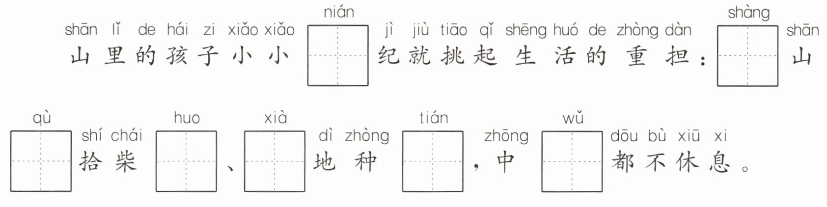 孩子(xǎo/ xiǎo)2 根据童谣内容填空(填序号)。