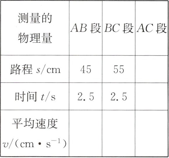 |平均速度$ v/(cm \cdot s^{-1}) $| | | |