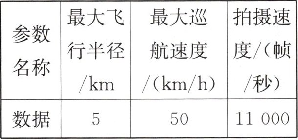 |参数名称|最大飞行半径/km|最大巡航速度/(km/h)|拍摄速度/(帧/秒)|