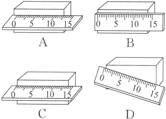 5. 用厚刻度尺测木块的长度,如图所示四种方法中,正确的是(