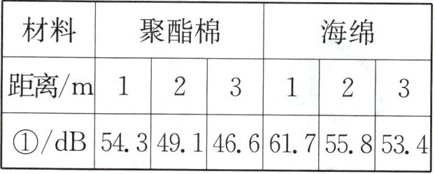 (2)改正错误后,小明在安静的环境下,将播放 80 dB 声音的手机 a 先后置于两个隔音盒中,另一个手机 b 在距隔音盒不同距离的位置测量接收的声音,如图乙所示,得出如表中的数据。表格①处应填写