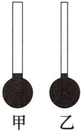 9. 如图所示的甲、乙两支自制温度计,用相同容积的玻璃泡,内装同一种测温物质。将它们放入同一杯热水中,下列说法正确的是(