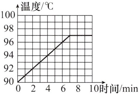 A 【解析】水沸腾前吸收热量,温度升高,故 A 正确;水沸腾时吸收热量,温度不变,故 B 错误;由图知水温升高到 97°C后保持不变,说明此时水的沸点为 97°C,水正在沸腾,水沸腾时吸收热量,温度不变,故 C 错误;由图知将水从 90°C加热至沸腾,总共用时 7 min,故 D 错误。