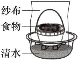 7. 我国劳动人民常在生产生活中运用科学知识解决实际问题。如图,将纱布盖在盛有饭菜的篮子上,使边缘浸在水中可以延长食物保存时间,关于该现象说法正确的是(