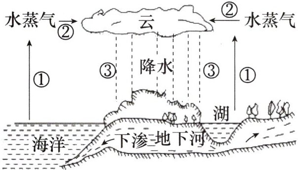 6. 如图是水循环示意图。图中①处发生的物态变化是