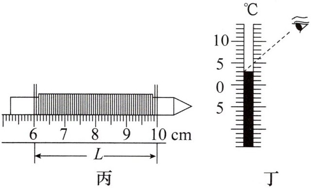 D.图丁中温度计的示数是 $ 5^{\circ}C $