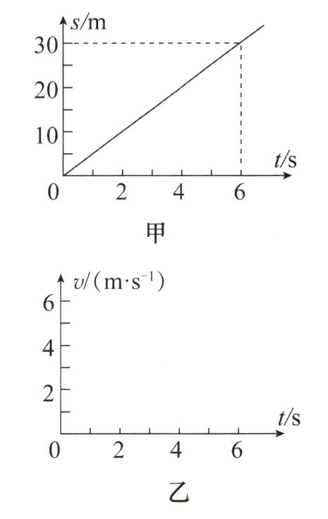 【解析】根据图甲可知,物体做匀速直线运动,并且速度$v=\frac{s}{t}=\frac{30\ m}{6\ s}=5\ m/s$。