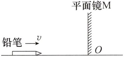 8. 如图所示,平面镜 M 直立在水平地面上,长 6 cm 的铅笔平放在地面上且与平面镜垂直,笔尖离平面镜 10 cm,现铅笔以 2 cm/s 的速度沿水平方向向平面镜匀速靠近,则(