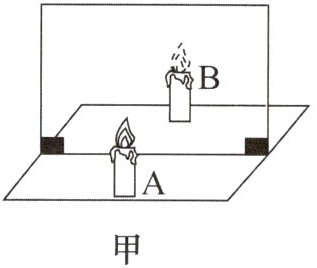 (2)小明将玻璃板竖直立在水平桌面上,在玻璃板前放置点燃的蜡烛 A,将蜡烛 B 放在玻璃板后并移动,直到蜡烛 B 与蜡烛 A 的像完全重合,这说明