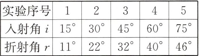 12. 为探究光折射时的特点,将一束光从空气斜射入水中发生折射,实验中的数据记录在表格中。