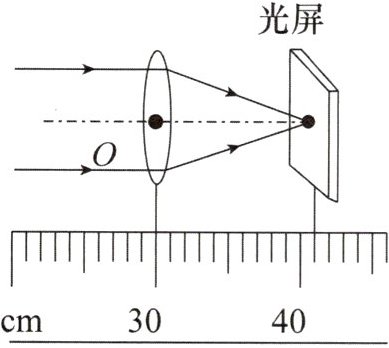 2. 俊俊同学利用光具座测量某凸透镜的焦距,如图所示,他让凸透镜正对着光源,调整光屏与凸透镜的距离,使光屏上得到一个最小、最亮的光斑。由图可知,凸透镜对光有