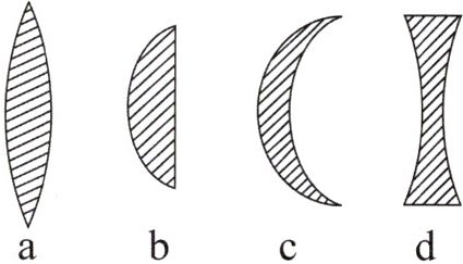 1.D[解析]a、b、c都是中间厚,边缘薄,是凸透镜,故A、B、C不符合题意;d中间薄,边缘厚,是凹透镜,故D符合题意。