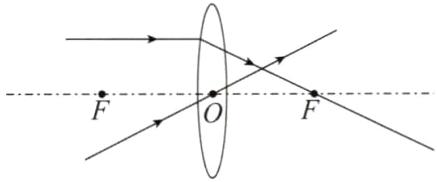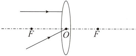 3. 如图所示,O 为凸透镜的光心,F 为焦点,请将图中两条光线的光路补充完整。