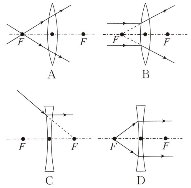 4. 如图表示的是两条光线经过凸透镜和凹透镜的光路图,其中画法正确的是(