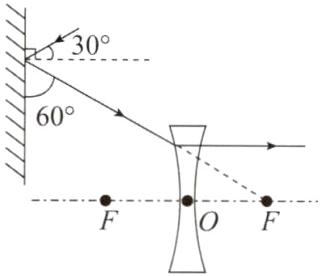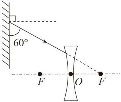 6. 如图所示,光线经平面镜反射后射向凹透镜,请画出射向平面镜的入射光线和经过凹透镜后的折射光线。
