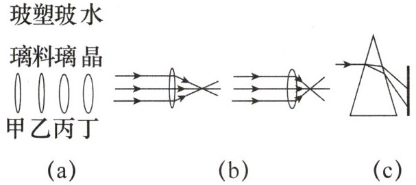 。(3)联想到光的色散现象,如图(c)所示,如果分别用红光和紫光测同一个凸透镜的焦距,用
